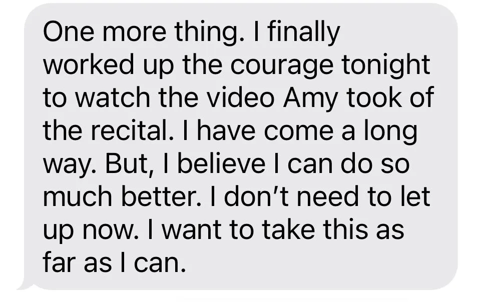 "I finally worked up the courage tonight. I have come a long way. But, I believe I can do so much better. I want to take this as far as l can."